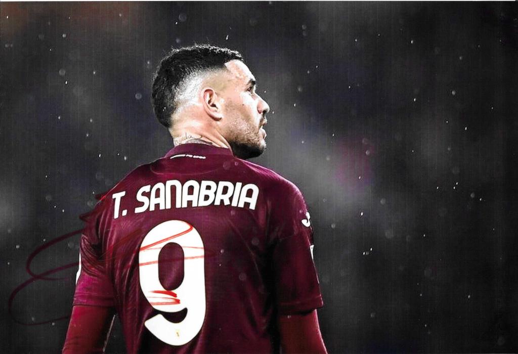 Foto autografata di Antonio Sanabria con la maglia del Torino. Scatto evocativo, firma originale sul numero 9.