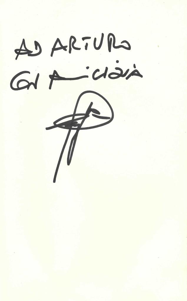 All’interno, il libro reca una dedica personalizzata vergata con pennarello nero: “Ad Arturo con amicizia” seguita dall’autografo di Roberto Baggio, il cui tratto distintivo si riconosce nel gesto ampio e curvo della "R".
