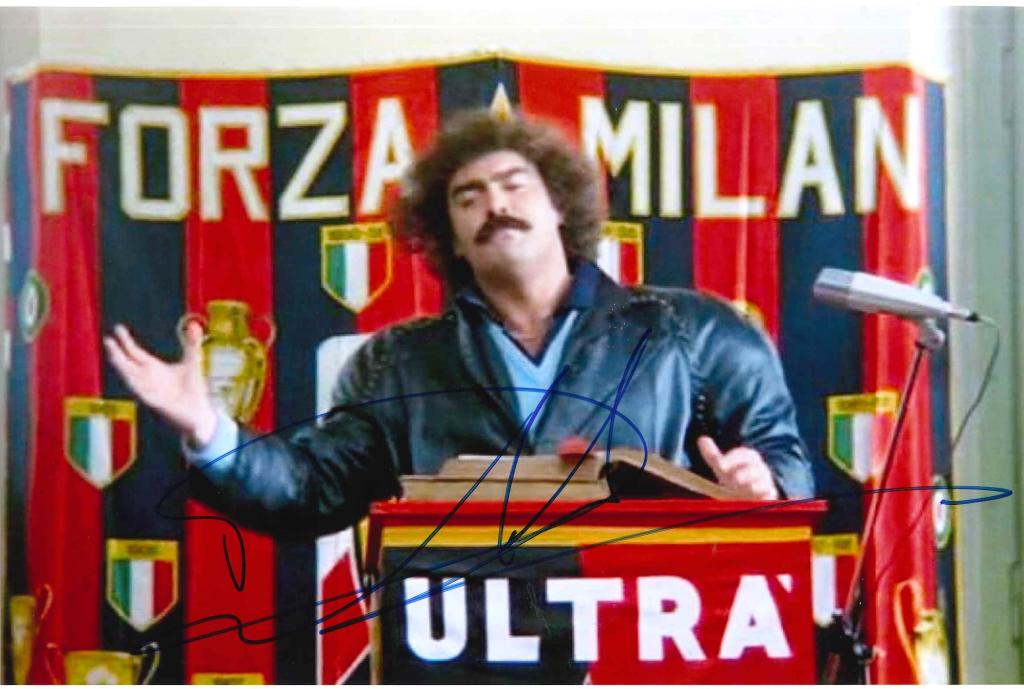 Foto cult autografata di Diego Abatantuono nel film Eccezzziunale… veramente nei panni del leader ultras milanista Donato Cavallo.