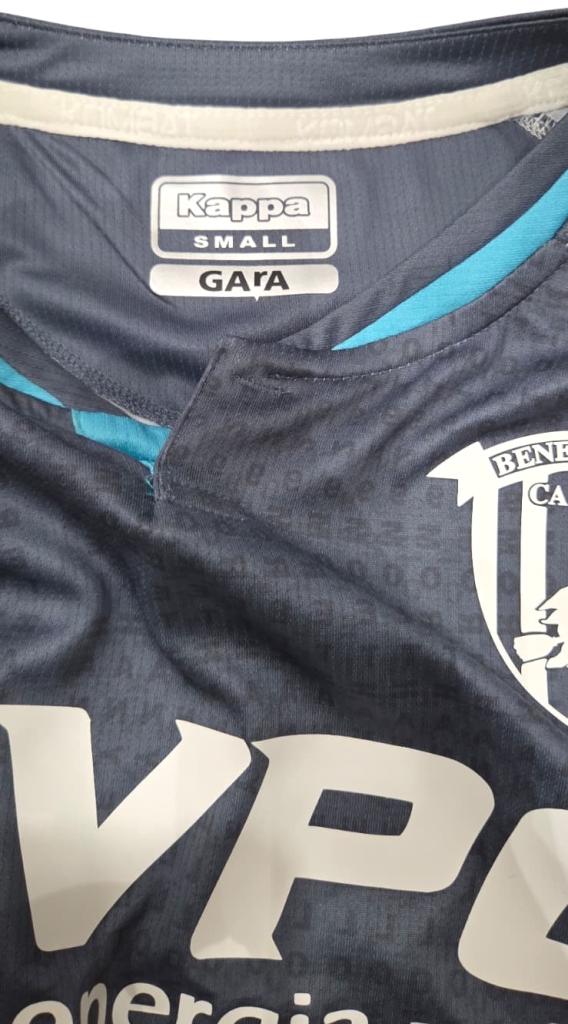 Lo stemma del Benevento è presente sul lato sinistro del petto, affiancato da loghi Kappa sulle spalle.