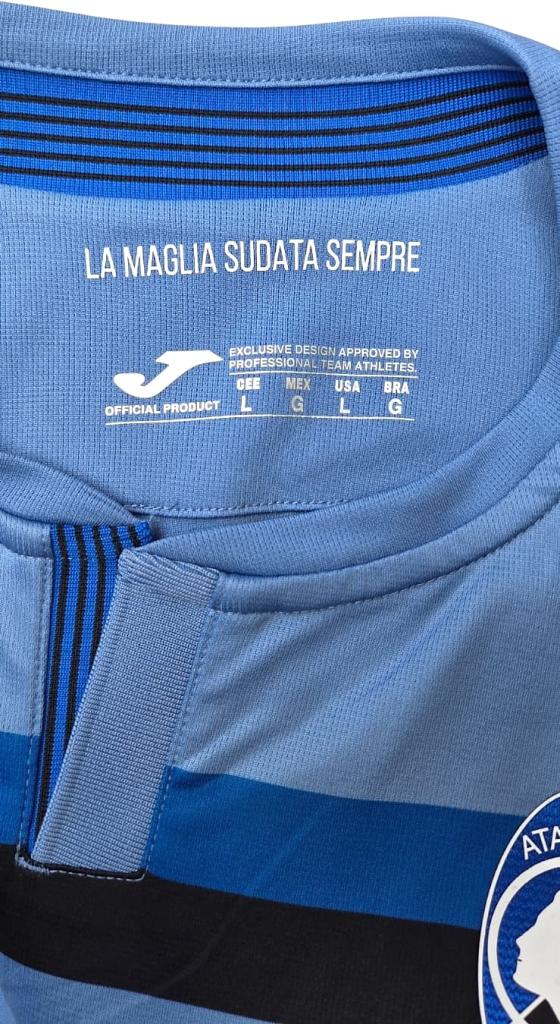 All’interno del colletto è presente la dicitura “La Maglia Sudata Sempre”, frase interna caratteristica nelle divise dell’Atalanta moderne.