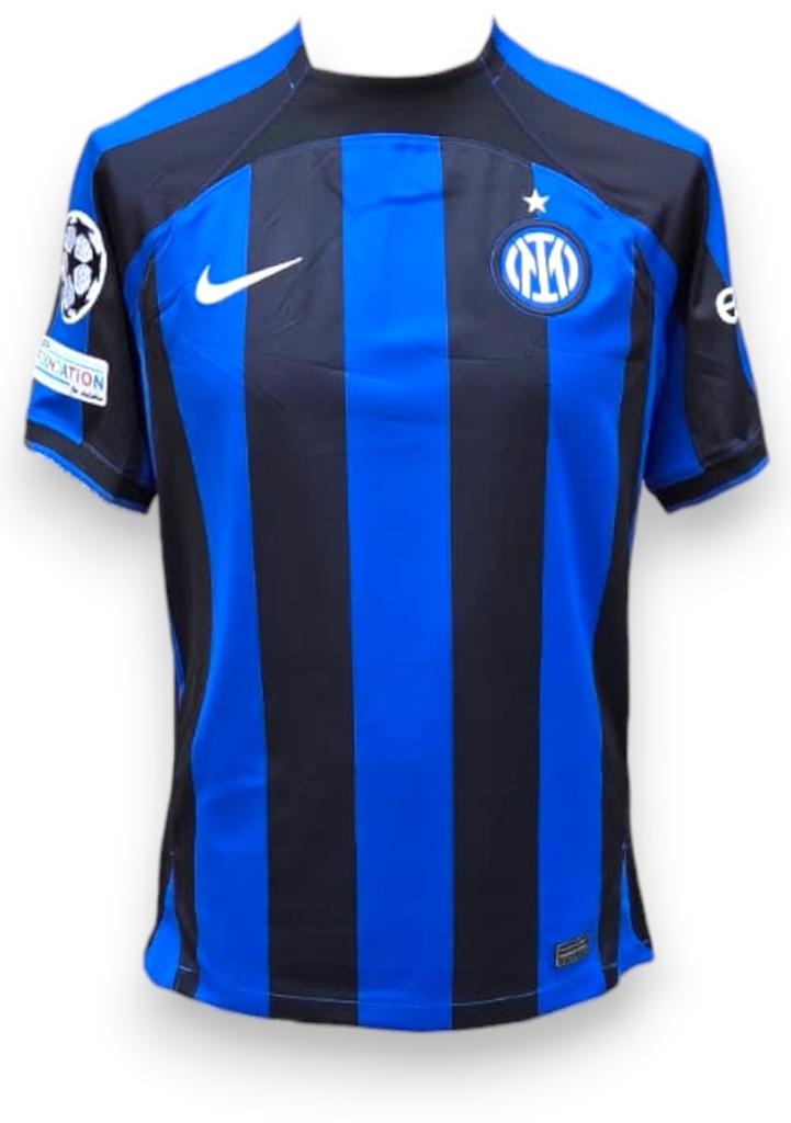 Sulle maniche è presente la patch della Champions League e la patch “UEFA Foundation”. Sul retro si legge “LAUTARO” in bianco con il numero “10” .