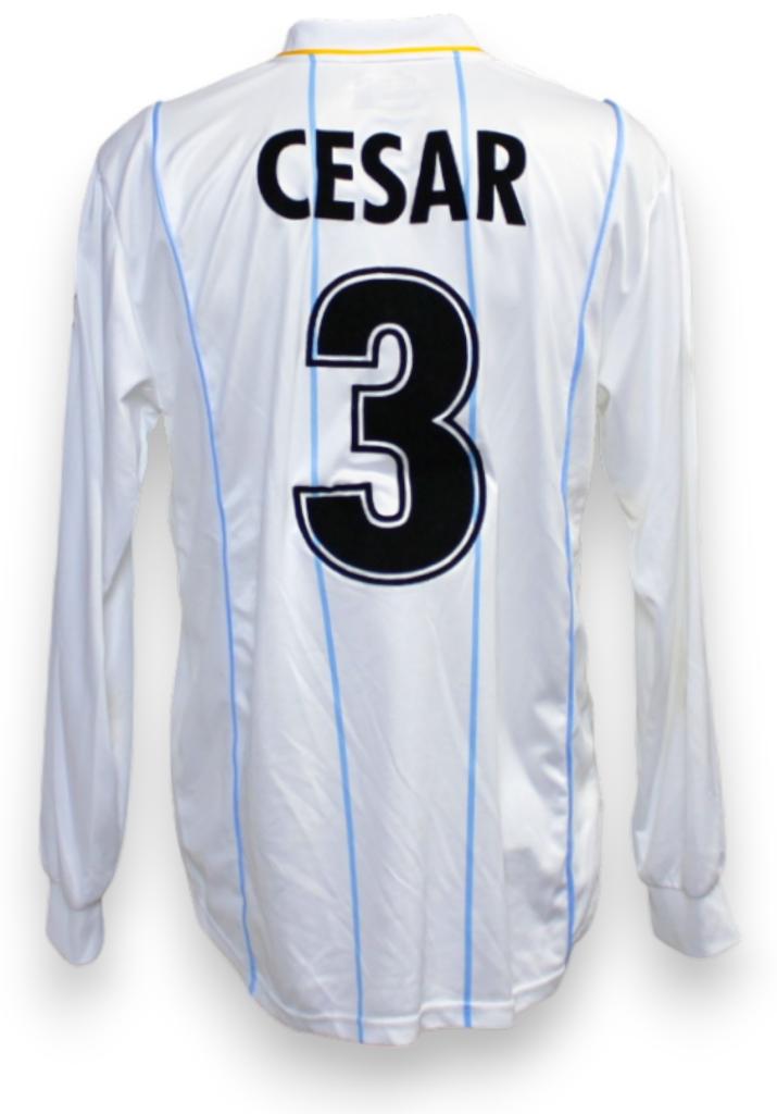 Maglia Lazio bianca con righe azzurre, manica lunga, player issued con personalizzazione Cesar #3, modello Puma anni 2001/02.