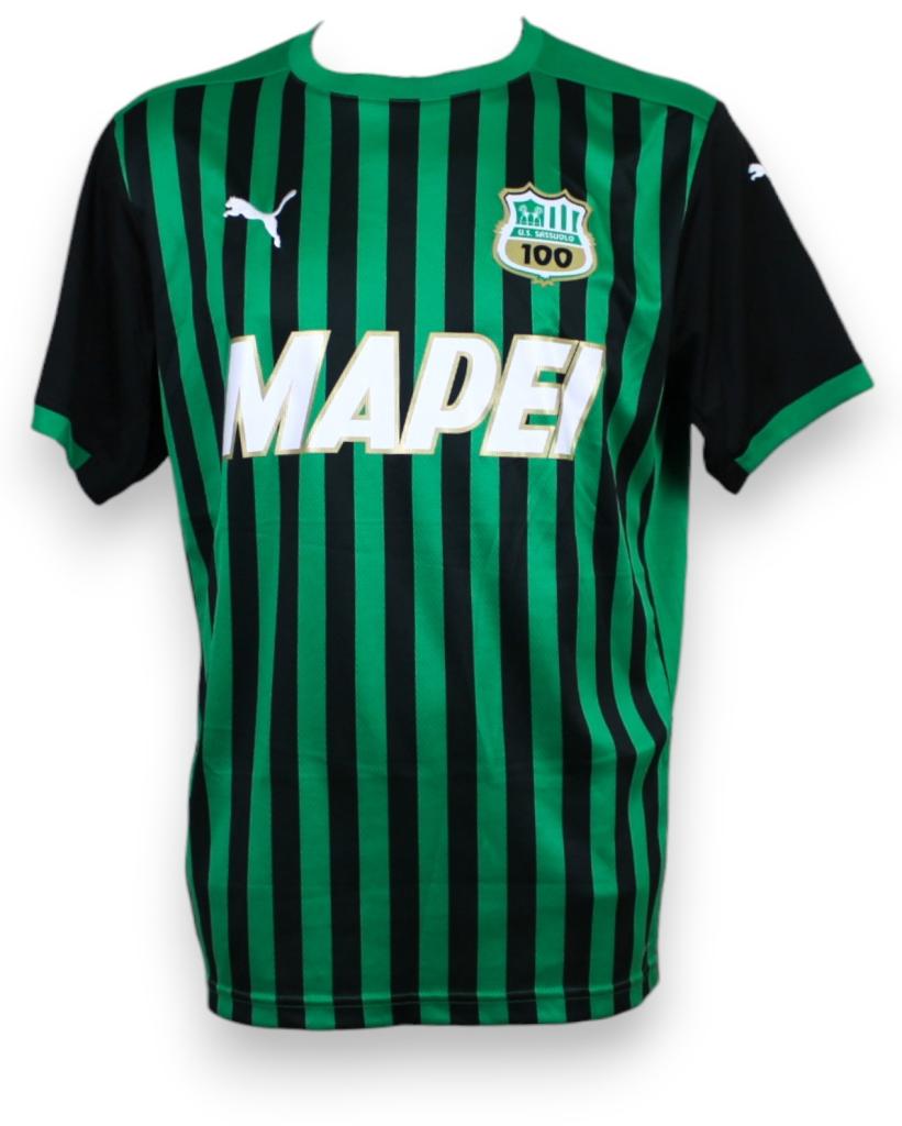 Maglia Sassuolo home 2020/21 con strisce verticali nero e verdeSponsor / loghi:
