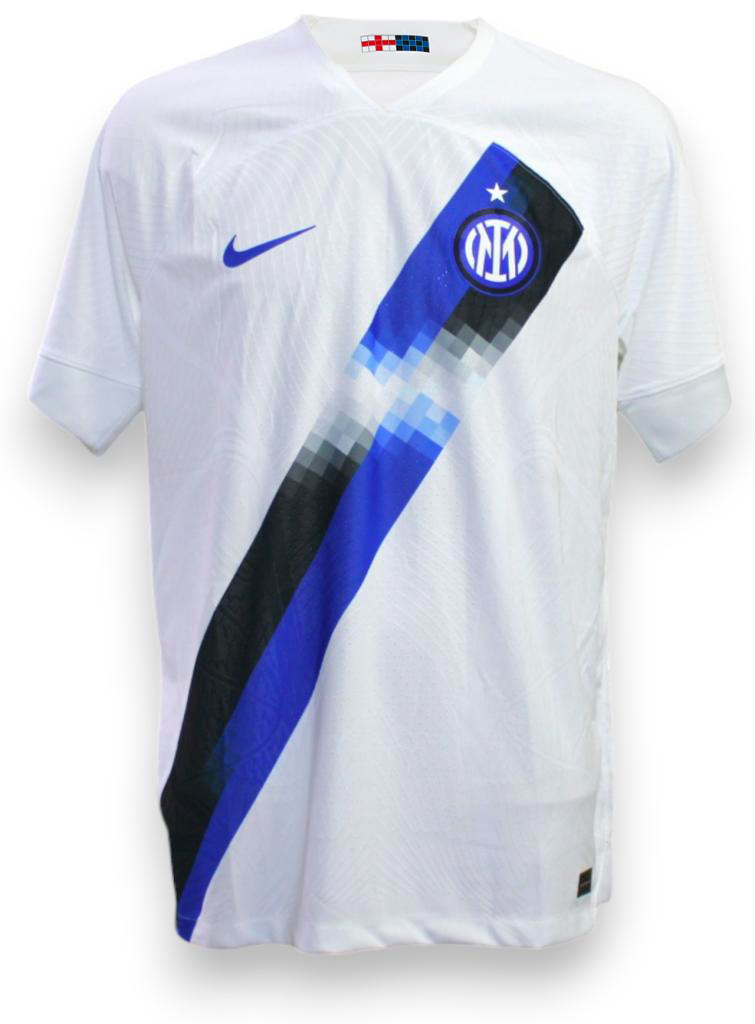 Maglia Inter Away stagione 2023/24, bianca con personalizzazione Lautaro 10 sul retro. Maglia versione store.
