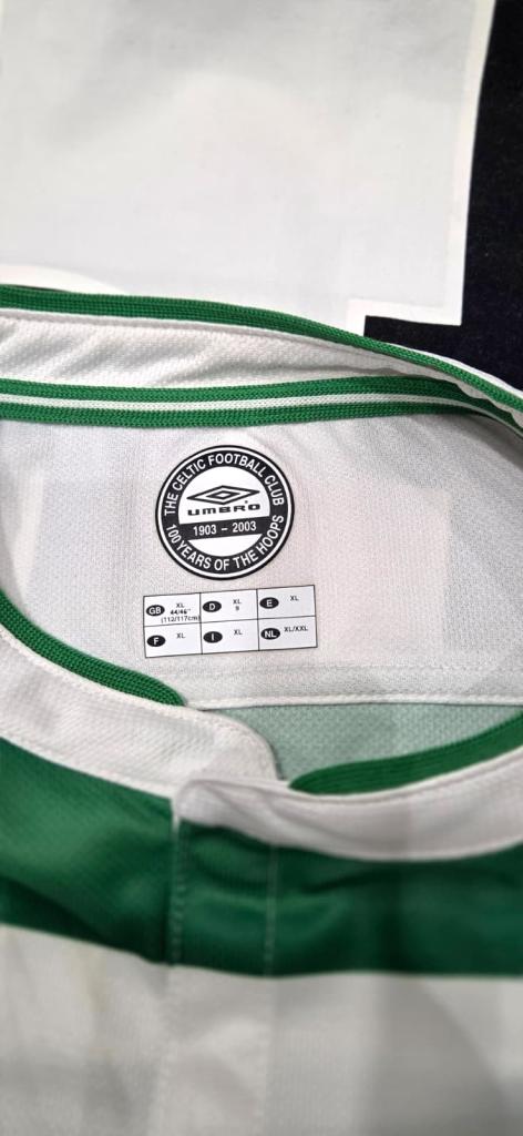 Maglia home del Celtic stagione 2003/04, prodotta da Umbro e dedicata al centenario del club (1903–2003), con personalizzazione McManus 44.