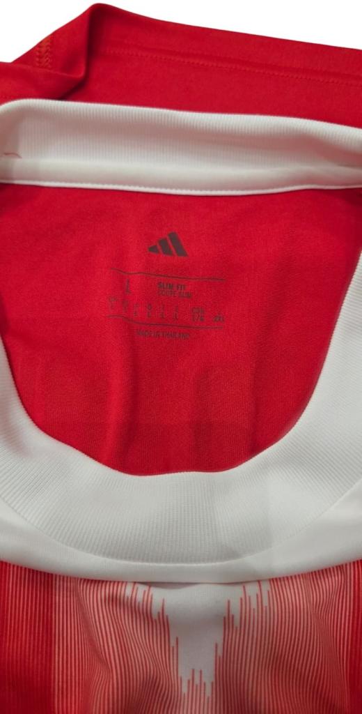 Sul retro spicca la scritta "FC Bayern München", accompagnata dall’iconico motto "Mia San Mia" sotto il colletto, a testimonianza dell’identità e dei valori del club bavarese. Un capo pensato per i tifosi che vogliono vivere appieno la passione per il Bayern, ideale sia per il collezionismo sia per indossarlo con orgoglio.