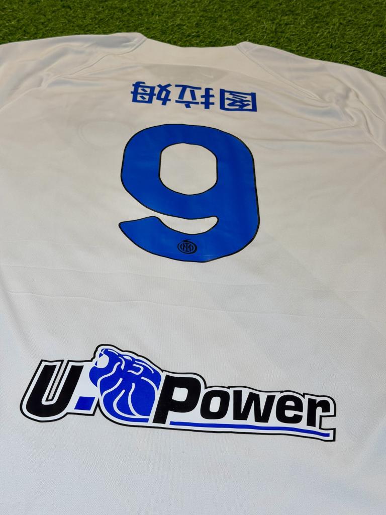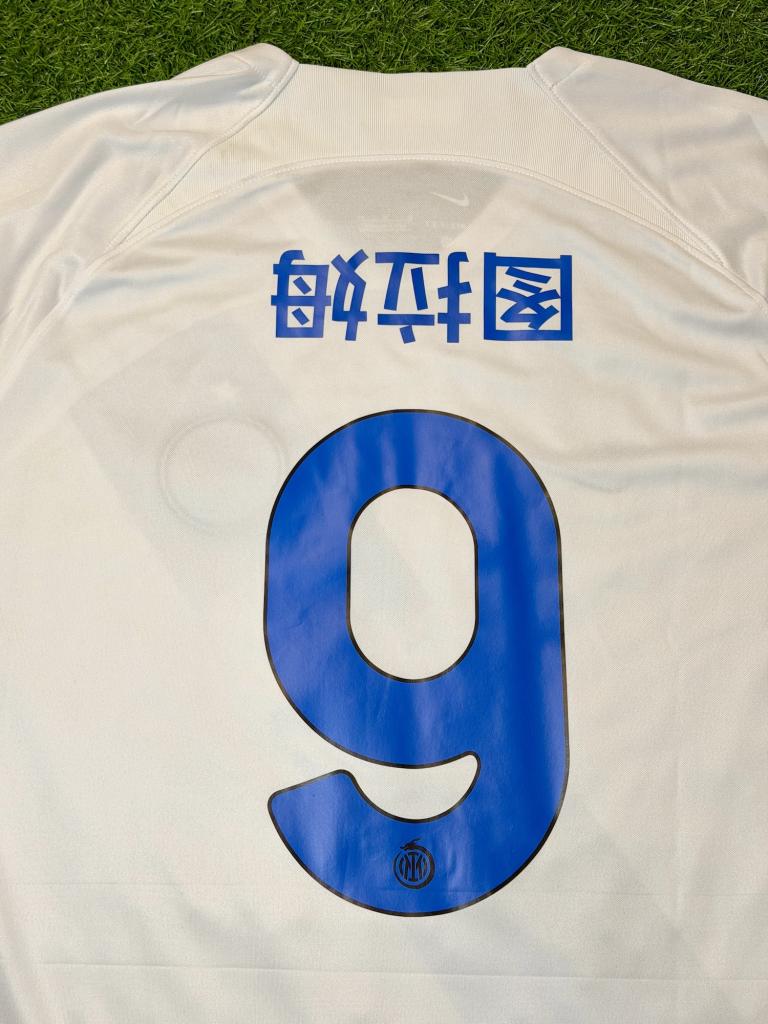 Sul retro è presente la personalizzazione THURAM con il numero 9, caratterizzata dalla particolarità del nome in caratteri cinesi.
