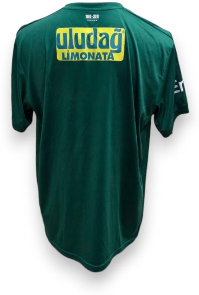 Lo sponsor principale “Warmhaus” campeggia al centro in nero con logo arancione, mentre sul retro spicca il grande riquadro giallo con scritta “Uluda? Limonata”, partner storico del club. Completano la maglia i loghi “?kili” sulle maniche e il dettaglio commemorativo “1963–2018” sotto il colletto posteriore. Taglia XL con etichetta interna cucita e dicitura “Made in Turkey”. Versione Store destinata alla vendita al pubblico.