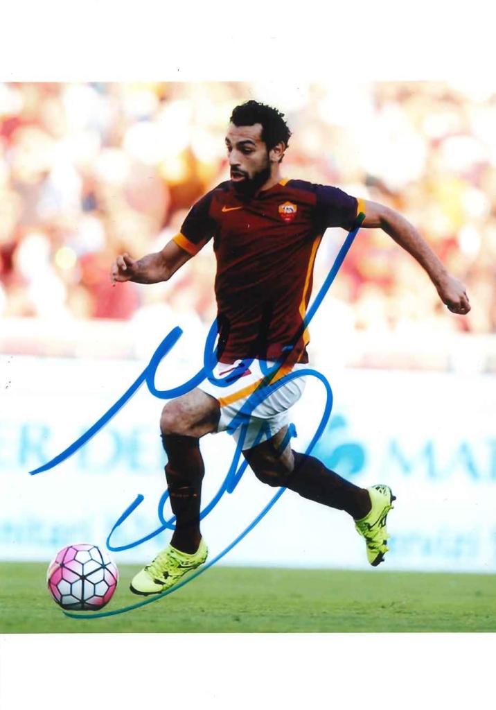 Fotografia autografata collegata al periodo italiano della carriera di Salah, di interesse per collezioni dedicate al calcio internazionale e ai protagonisti della Serie A.