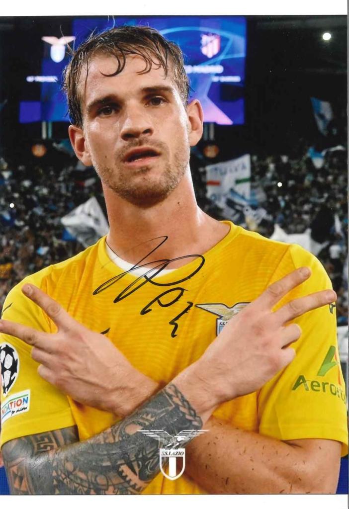 Fotografia autografata collegata alla sua esperienza con la Lazio, di interesse per collezioni dedicate ai protagonisti della Serie A e al club biancoceleste.