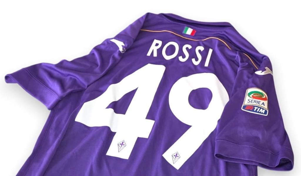 Maglia Home della Fiorentina stagione 2013-2014, versione Player Issued con nome Rossi e numero 49, patch Serie A.