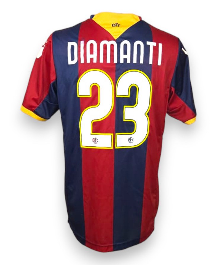 Maglia Home del Bologna stagione 2011-2012, versione Player Issued, con nameset Diamanti e patch Serie A.