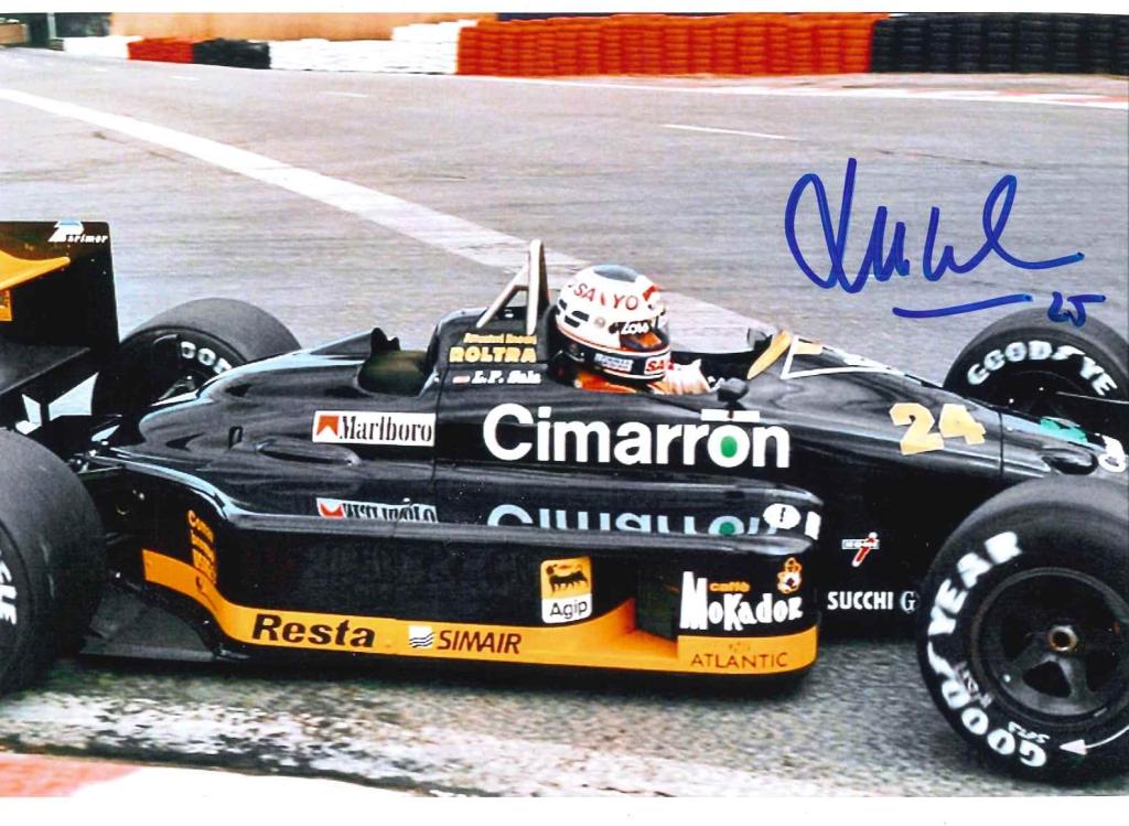 Questa fotografia autografata documenta un momento legato all’attività in pista di L.P. Sala e costituisce un elemento di interesse per collezioni dedicate alla Formula 1, ai piloti e alla storia tecnica delle monoposto di fine Novecento.