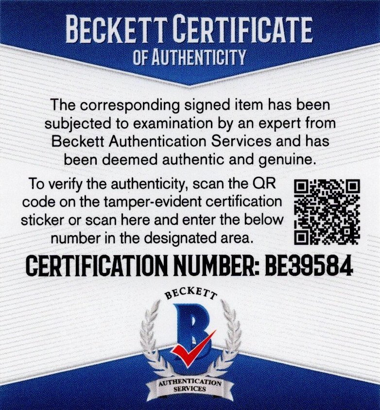 Oltre al certificato di autenticità dell'Associazione Autografia è presente l'adesivo olografico della Fiterman Sports e il certificato di autenticità di Beckett.