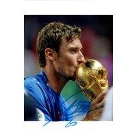 Autografo di Francesco Totti su fotografia in maglia Roma, capitano storico e campione del mondo 2006 con l’Italia.