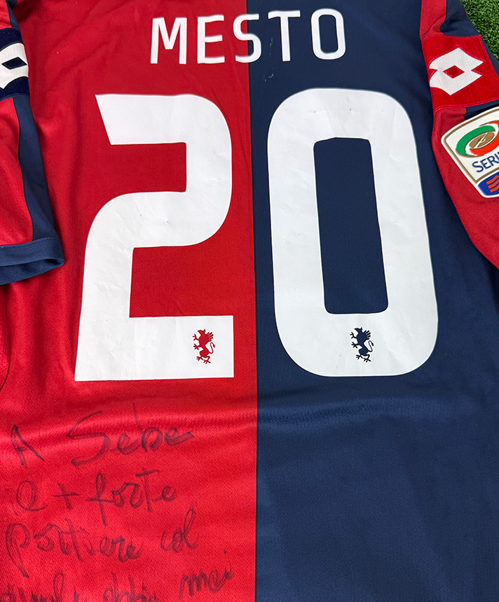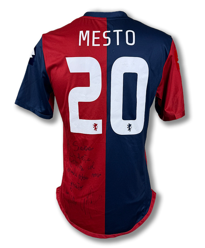 Maglia Home del Genoa autografata da Mesto, stagione 2012/2013, versione Store con patch ufficiale Serie A.