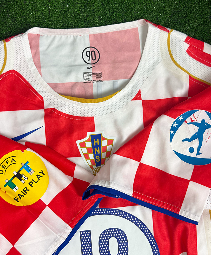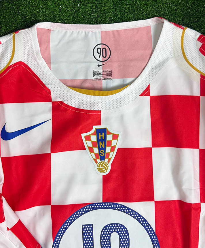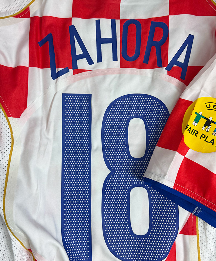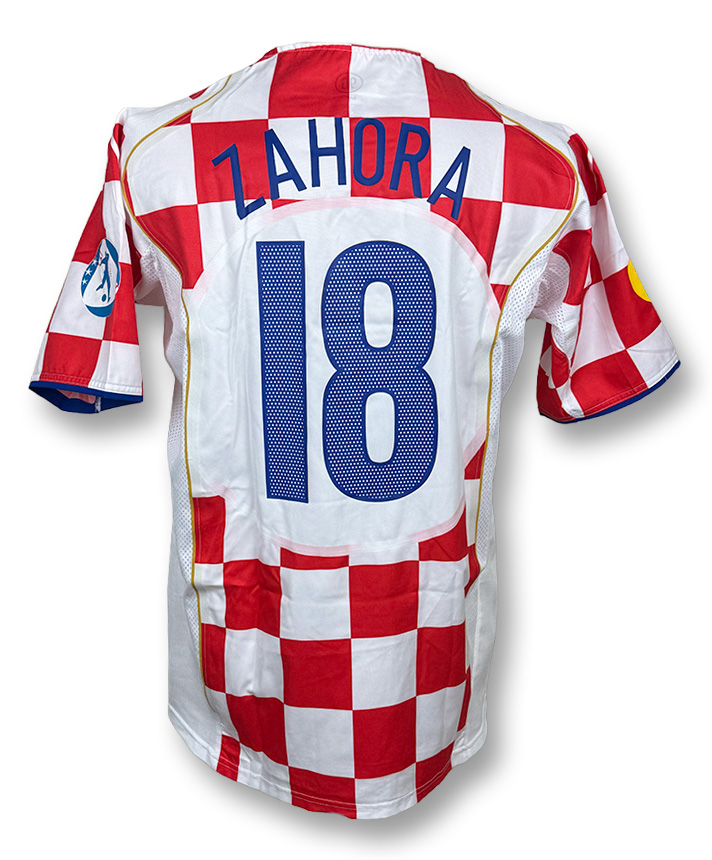 Maglia Home della Croazia 2004 con iconico design a scacchi, versione Player Issued Under 21 con nameset Zahora 18.
