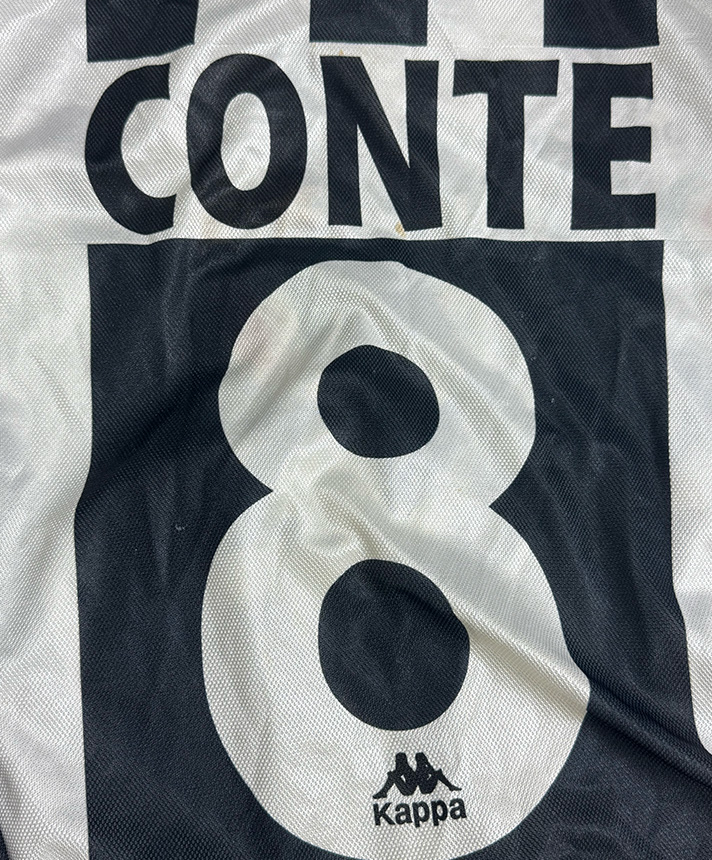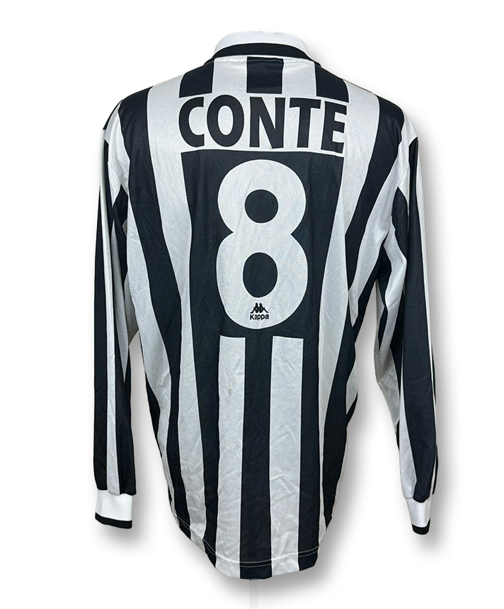 Iconica maglia Home della Juventus stagione 1995-1996, versione Player Issued a manica lunga, personalizzata con Conte 8.