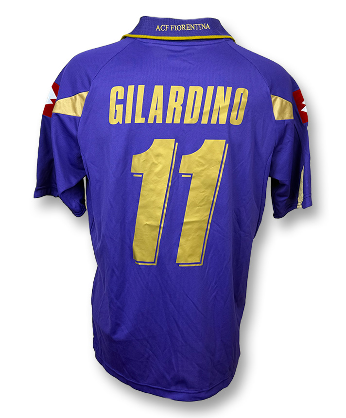 Maglia Home della Fiorentina stagione 2010-2011, versione Player Issued, personalizzata Gilardino 11 con patch ufficiale Serie A.