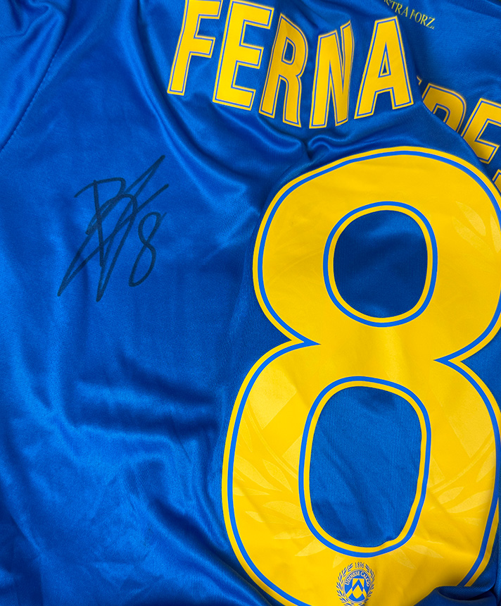 Maglia Third dell’Udinese autografata da Fernandes stagione 2015-2016, versione Player Issued con patch ufficiale Serie A.