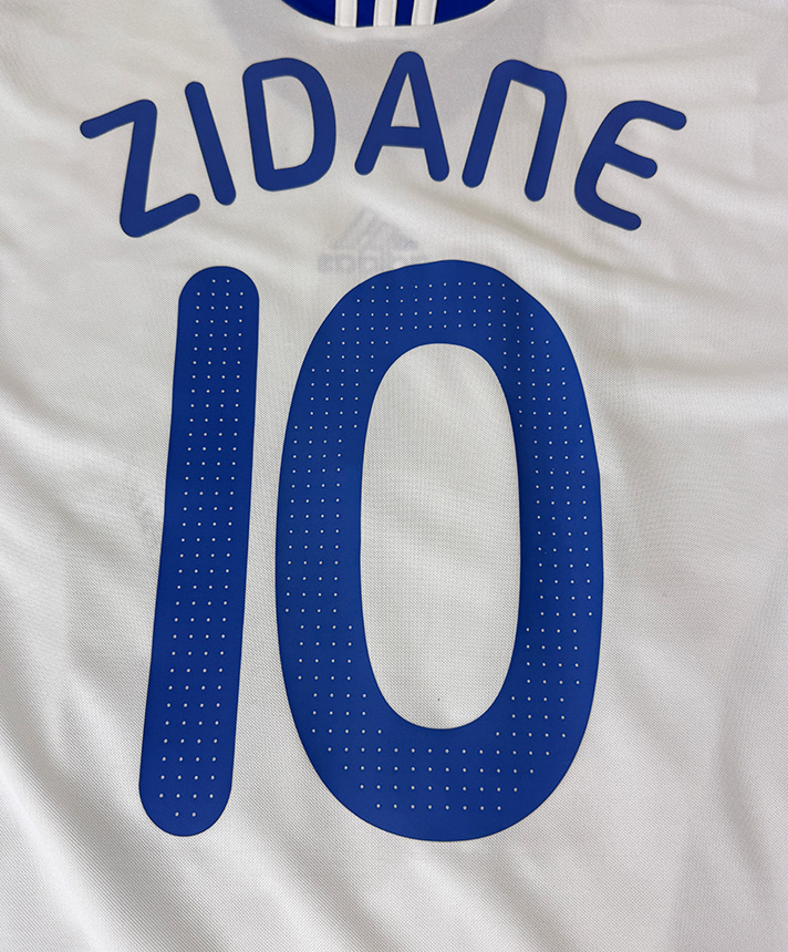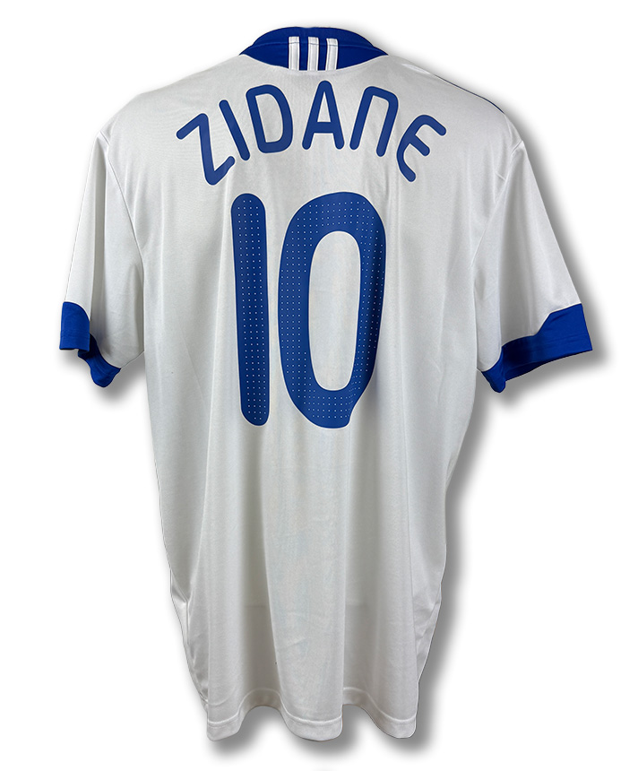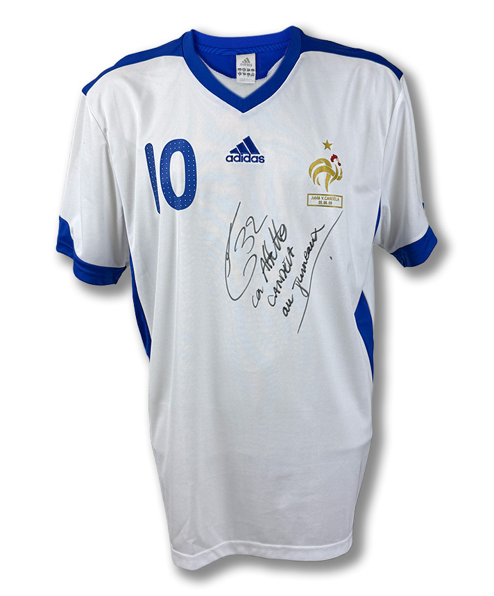 Maglia Away della Francia utilizzata per l’evento di addio al calcio di Vincent Candela, personalizzata Zidane con autografo di Candela.