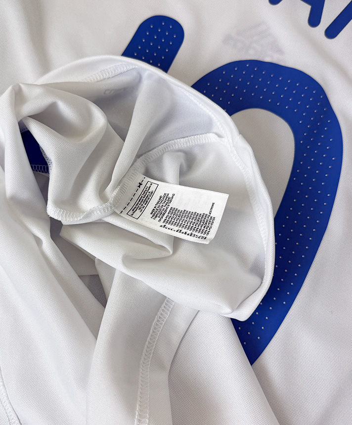 Realizzata da adidas nella versione Away, presenta una base bianca con dettagli blu, colletto a V e inserti laterali coordinati. Sul petto sono applicati il logo adidas, lo stemma della Nazionale francese e il numero 10, oltre alla dedica autografa originale di Vincent Candela.