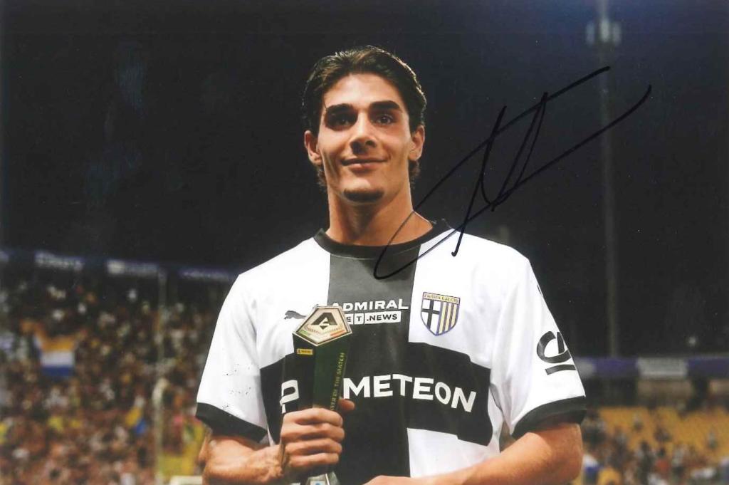 Fotografia autografata collegata alla sua esperienza con il Parma, di interesse per collezioni dedicate al calcio contemporaneo e ai giovani protagonisti del panorama italiano.