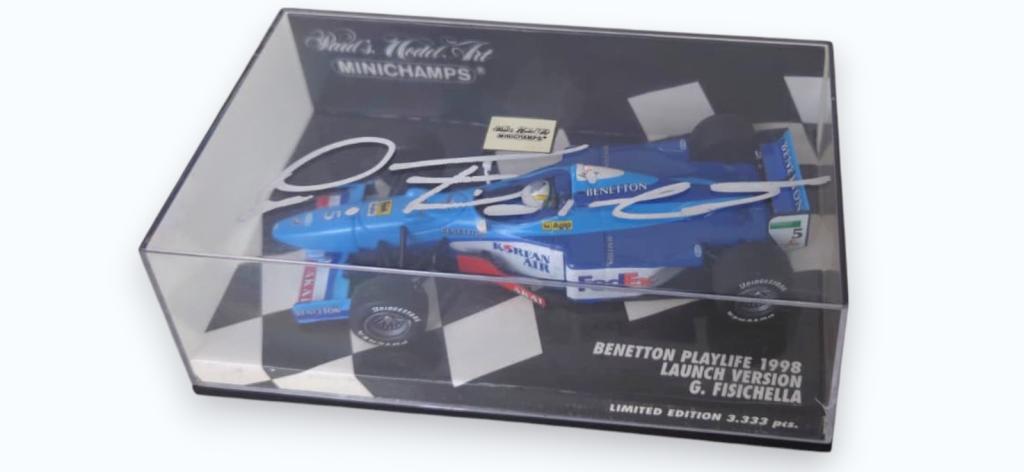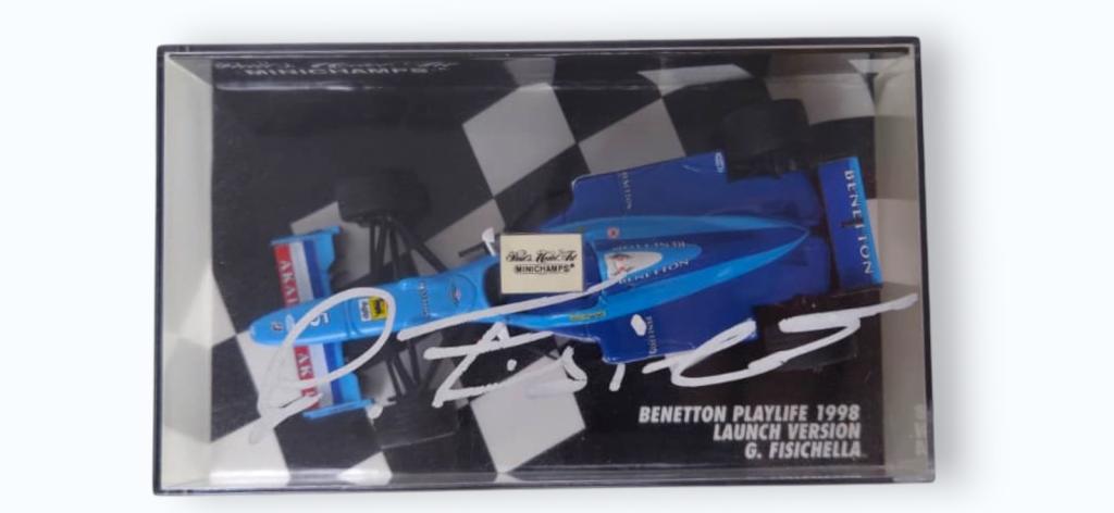 Autografo di Giancarlo Fisichella su modellino Benetton Formula 1 1998 Minichamps, edizione limitata.