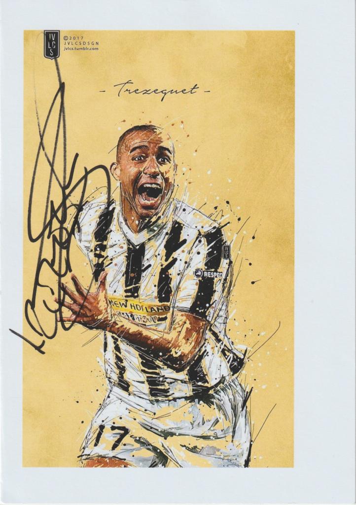 David Trezeguet appone la sua firma sul fronte dell’illustrazione con pennarello di colore nero.