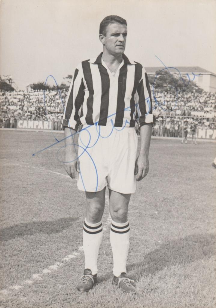 Autografo di Rino Ferrario su fotografia storica con maglia Juventus