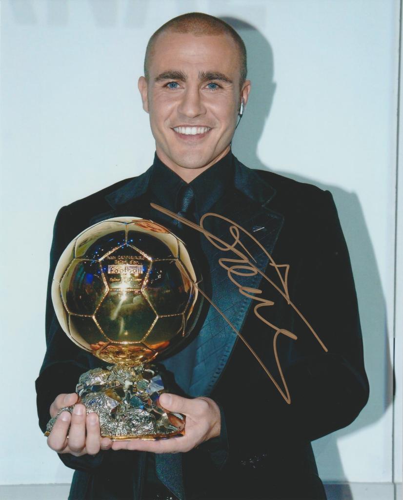 Autografo di Fabio Cannavaro su fotografia con Pallone d’Oro
