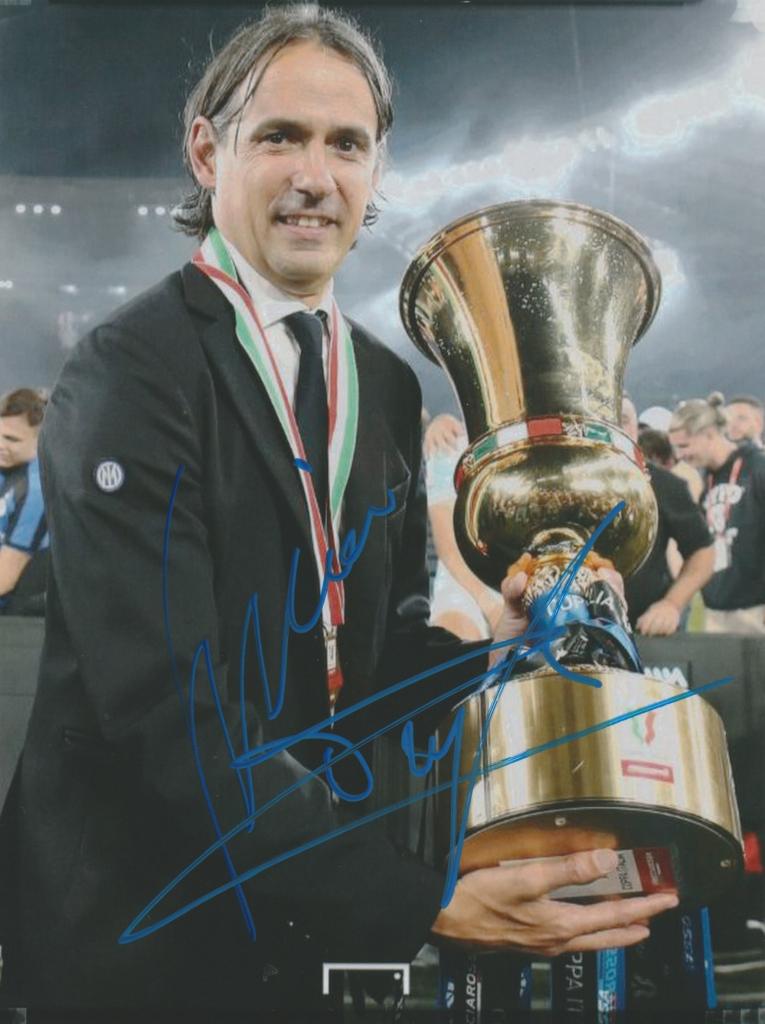 Questo autografo richiama uno dei momenti celebrativi della carriera di Simone Inzaghi alla guida dell’Inter e rappresenta un ricordo legato ai successi ottenuti dal tecnico con il club nerazzurro.