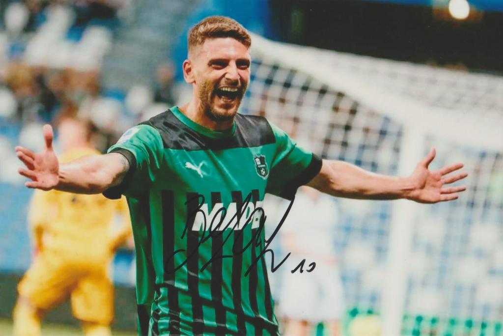 L’autografo di Domenico Berardi è apposto sul fronte della fotografia con pennarello nero al centro dell’immagine.