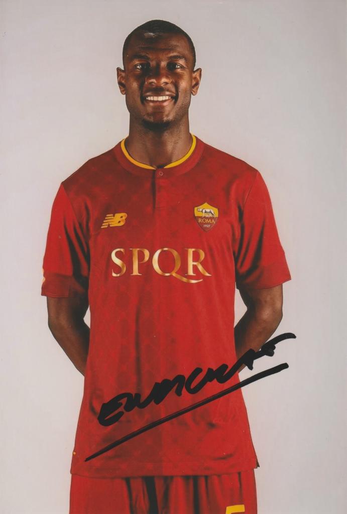 L’autografo di Evan Ndicka è legato al momento della sua presentazione ufficiale con la Roma e rappresenta una firma riferita all’inizio della sua esperienza nel club giallorosso, elemento che documenta una fase importante della carriera del difensore ivoriano.