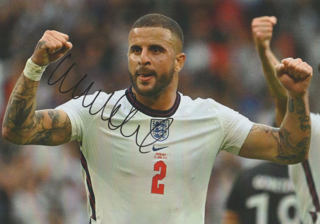 Autografo di Kyle Walker, difensore della Nazionale inglese protagonista con i Tre Leoni nei grandi tornei internazionali.