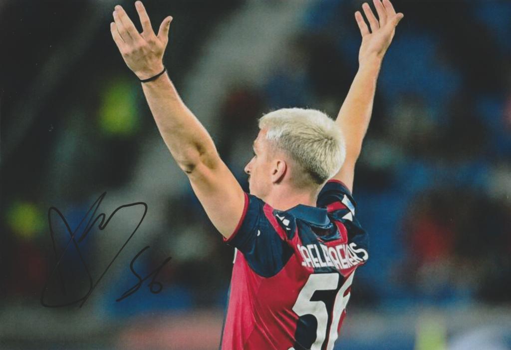 Autografo di Alexis Saelemaekers, l'esterno belga protagonista della storica qualificazione in Champions League con il Bologna.