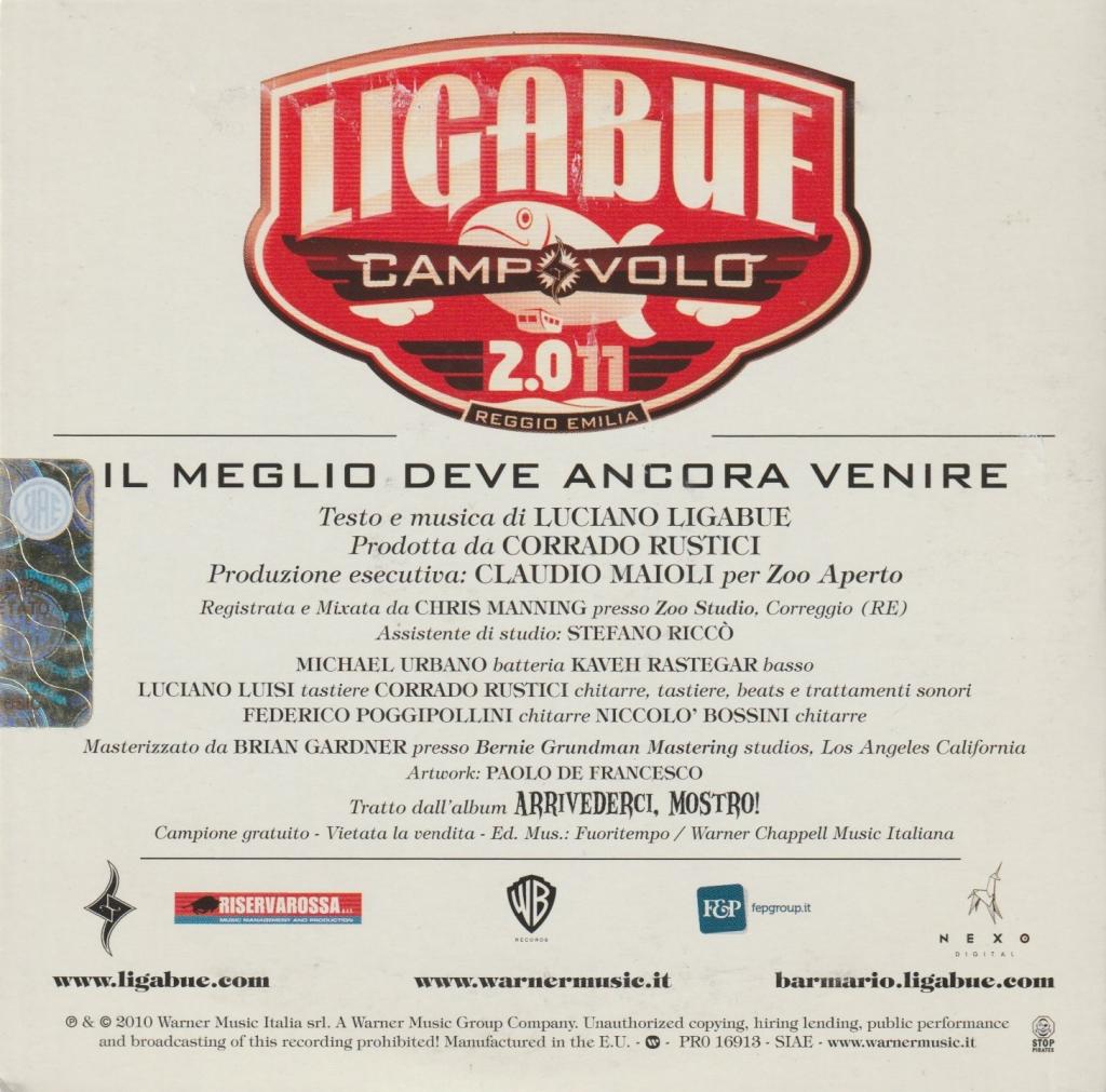 La copertina presenta la grafica con il dirigibile stilizzato e la scritta “Ligabue” su sfondo cielo, con riferimenti all’evento Campovolo e allo slogan del brano; sul retro sono riportati i crediti di produzione e le informazioni editoriali legate all’album “Arrivederci, Mostro!”.