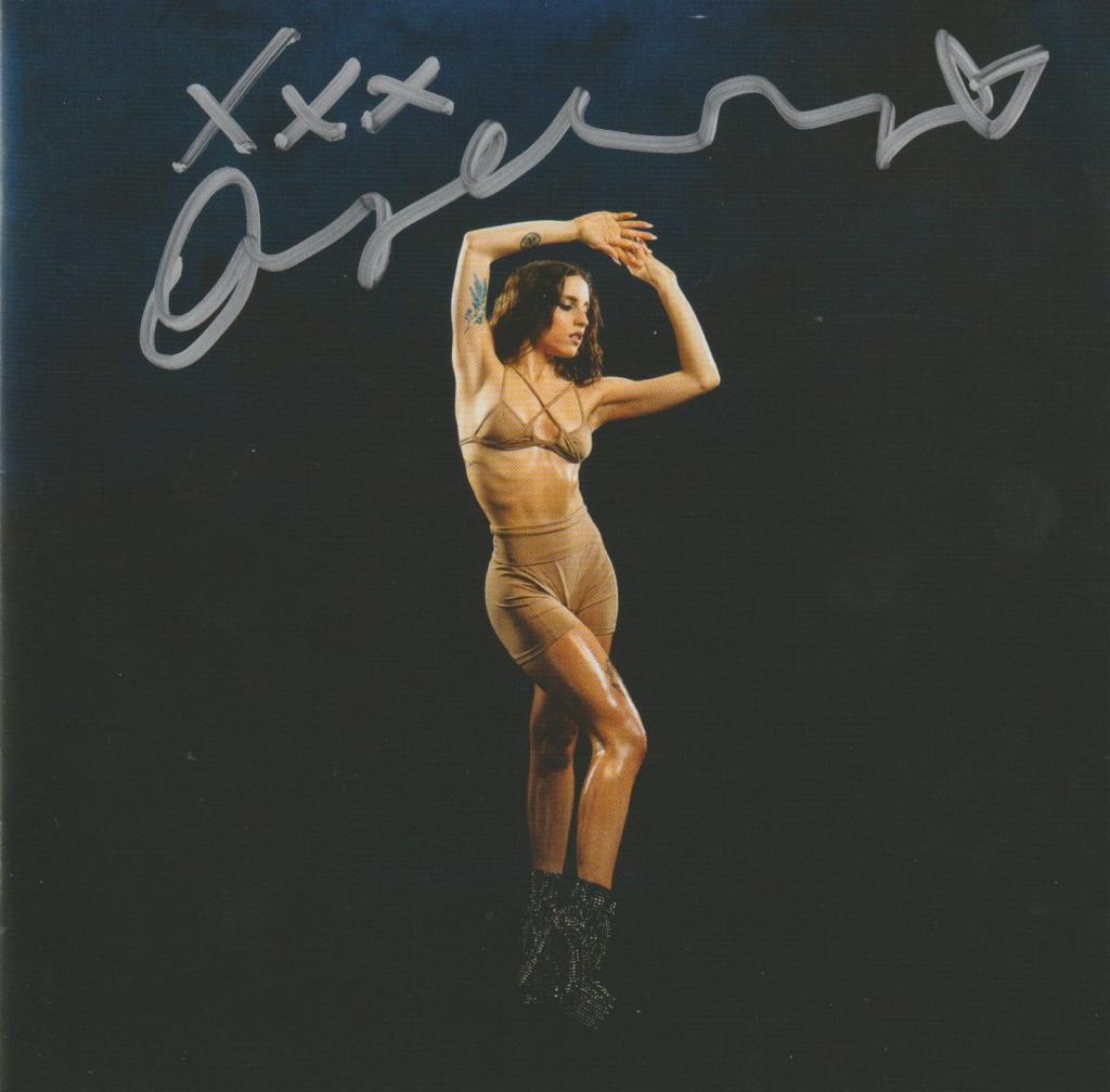 Autografo di Angelina Mango su copertina CD “Poké Melodrama”. Firma in pennarello argento sul fronte.