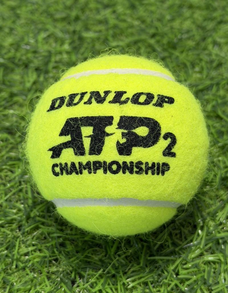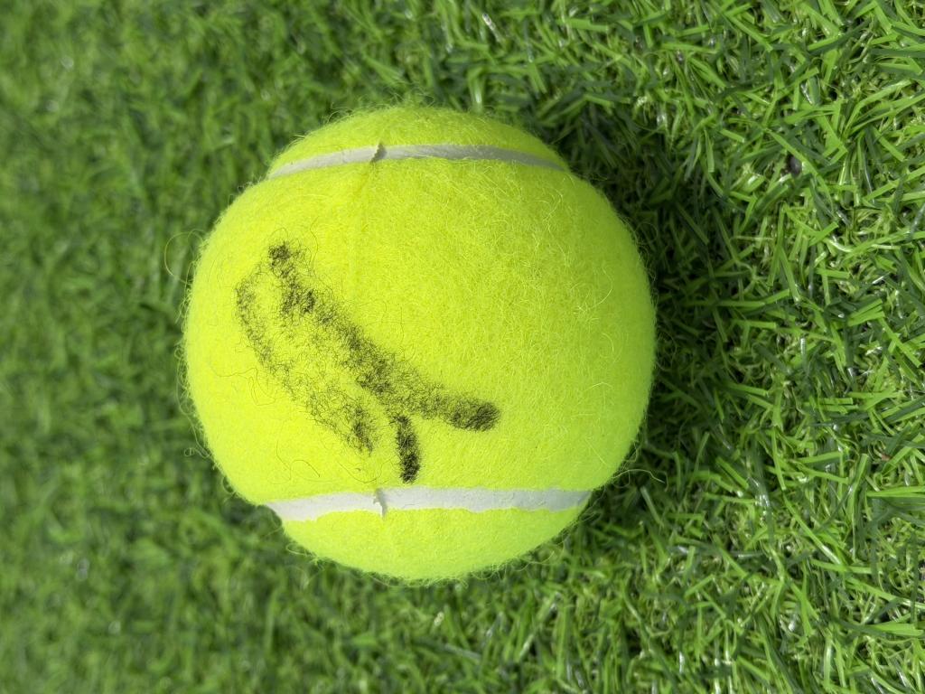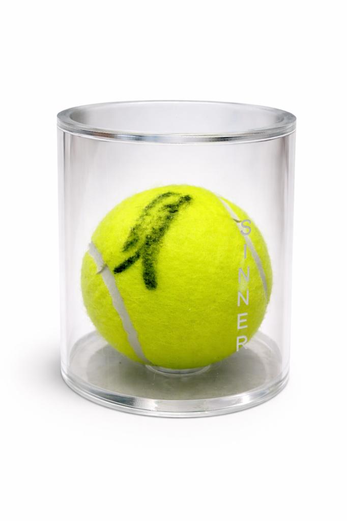 Pallina da tennis Dunlop ATP Championship 2 originale, con autografo di Jannik Sinner apposto a pennarello, conservata in teca espositiva personalizzata.