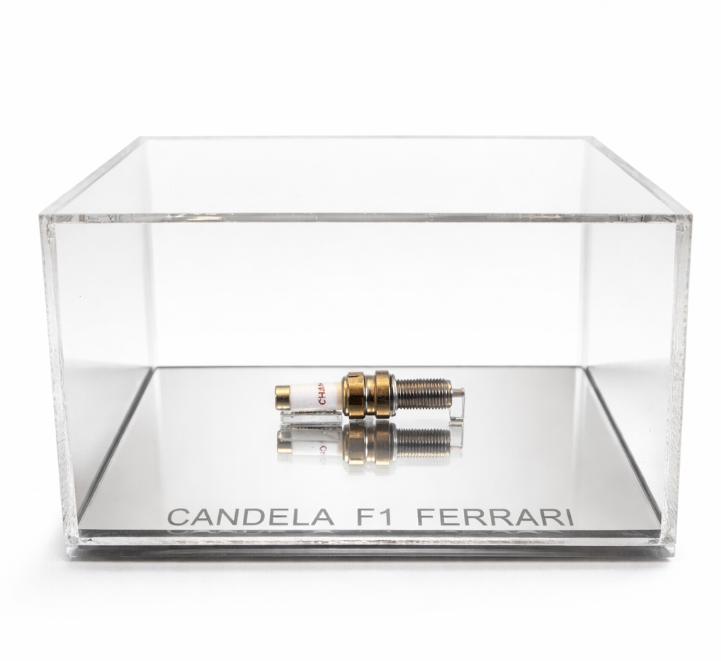 Candela d’accensione utilizzata su motore Ferrari di Formula 1, riconducibile al periodo in cui Michael Schumacher conquistò il titolo mondiale con la Scuderia (stagione 2000). L’elemento presenta corpo metallico filettato con isolatore ceramico marcato “Champion”, tipologia comunemente impiegata nei propulsori ad alte prestazioni della massima categoria.
