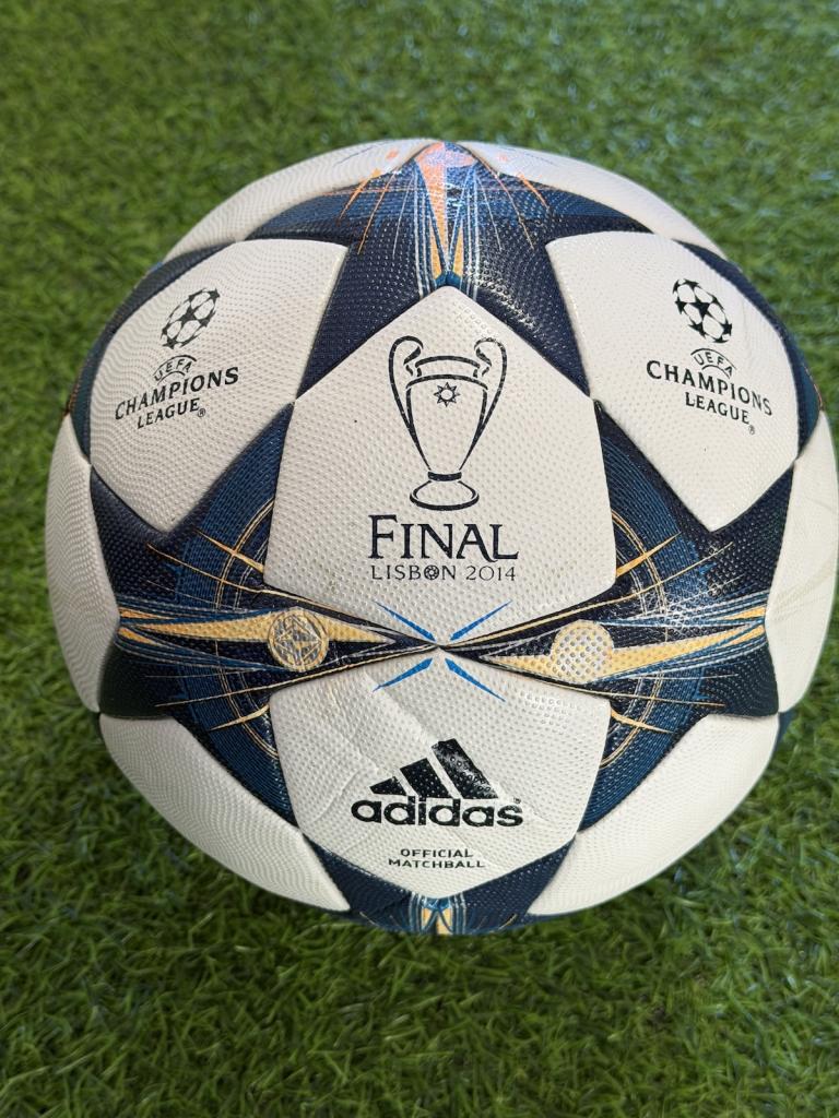 Pallone ufficiale adidas utilizzato per la finale di UEFA Champions League 2014 disputata a Lisbona. Modello caratterizzato dal classico design “a stelle” della competizione, con grafica dedicata all’evento e dicitura “Final Lisbon 2014” impressa su un pannello.