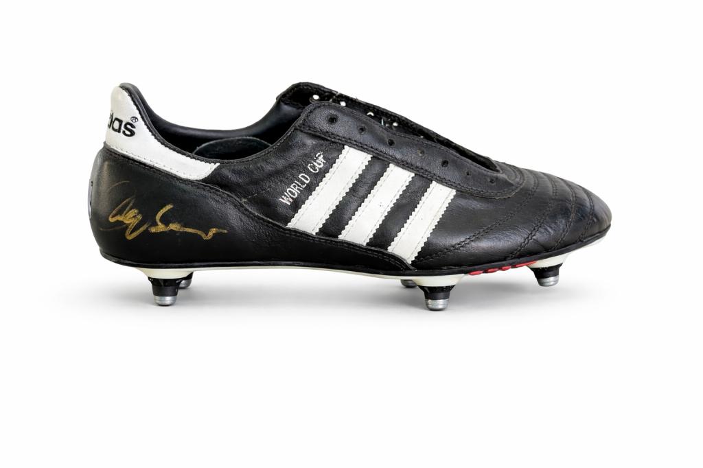 Oggetto di grande rilevanza collezionistica, unisce l’iconicità del modello Adidas alla firma di uno dei protagonisti assoluti della storia del calcio.