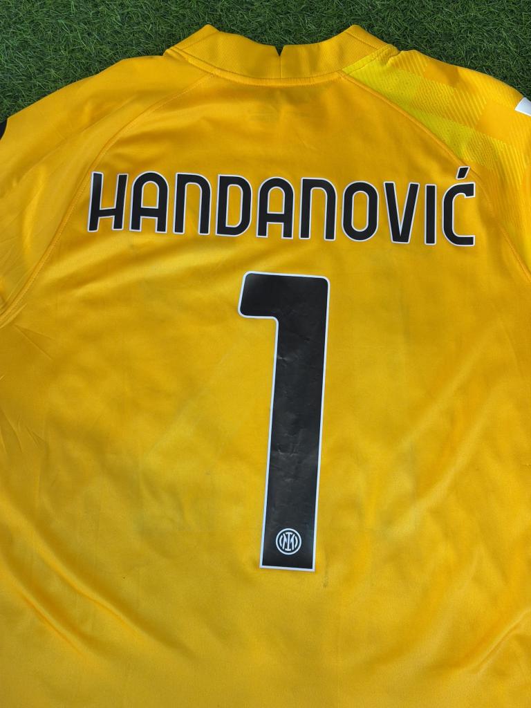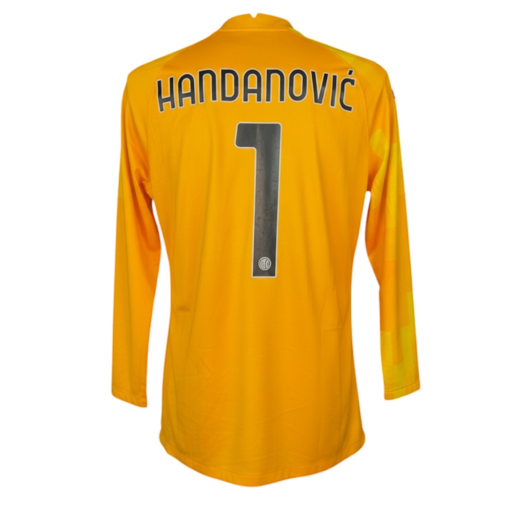 Maglia da portiere distintiva per colorazione e dettagli grafici, legata a una fase recente della storia nerazzurra con Handanovic protagonista tra i pali. Un capo rappresentativo e riconoscibile, ideale per collezionisti e appassionati dell’Inter.
