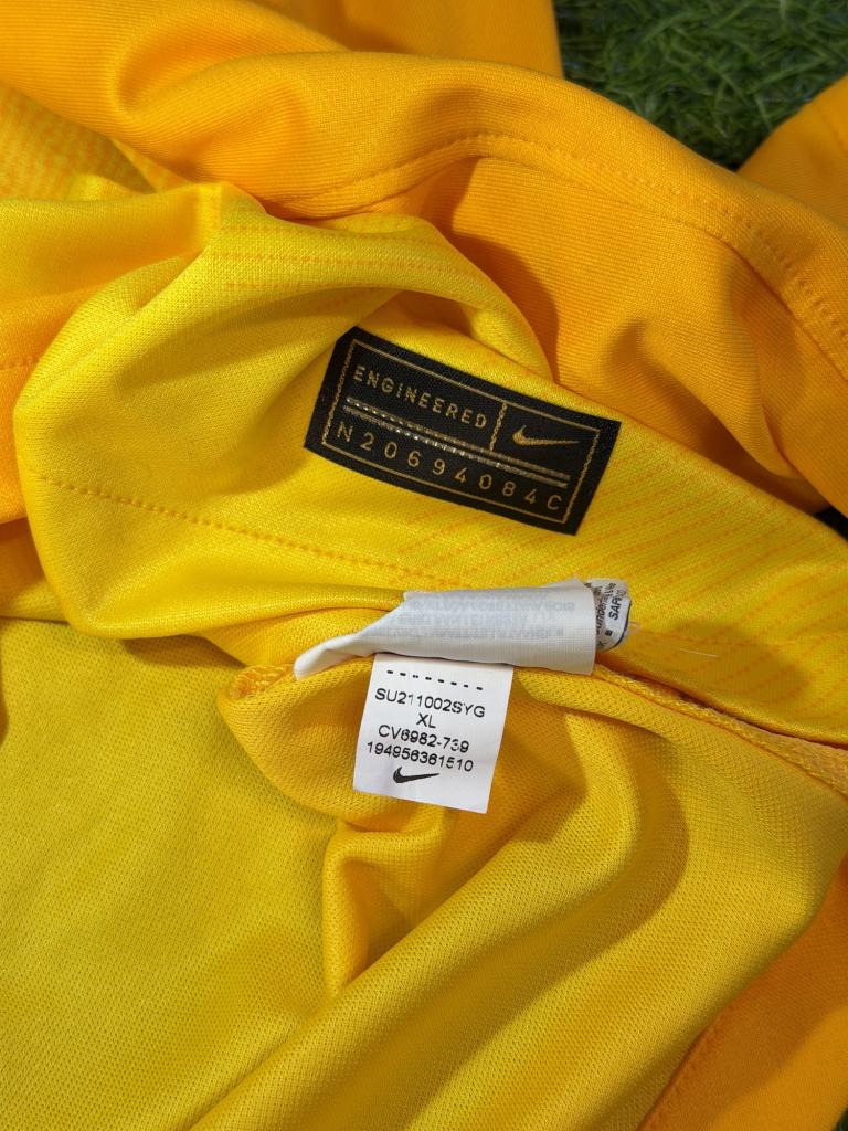 Il modello è a manica lunga con vestibilità regolare, caratterizzato da un colletto girocollo elasticizzato e struttura pensata per il ruolo del portiere. Il tessuto è in poliestere tecnico Dri-FIT, leggero e traspirante, progettato per garantire comfort e gestione ottimale della sudorazione durante la prestazione.