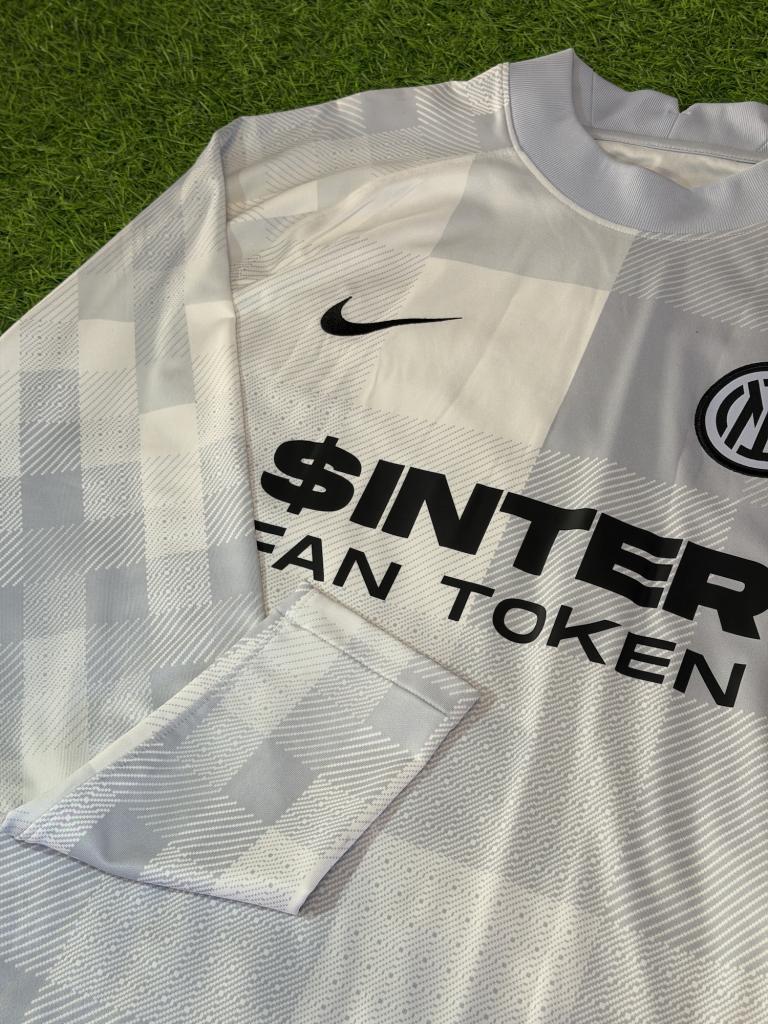 Maglia da portiere dell’Inter stagione 2021/2022 nella versione store, realizzata in una tonalità grigio chiaro con grafica a blocchi tono su tono che dona un effetto moderno e pulito.