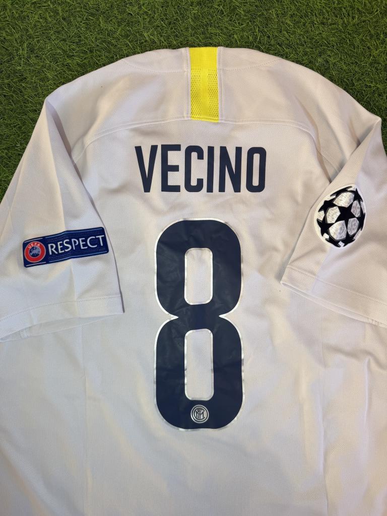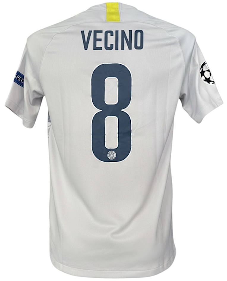 Maglia third dell’Inter della stagione 2018/2019 versione Store con personalizzazione Vecino 8 e patch ufficiale di Champions League.