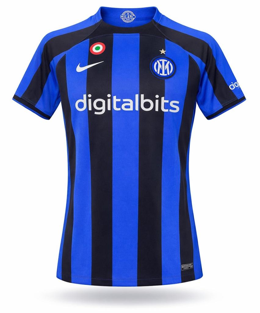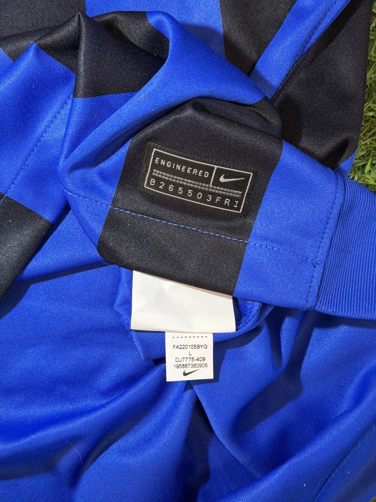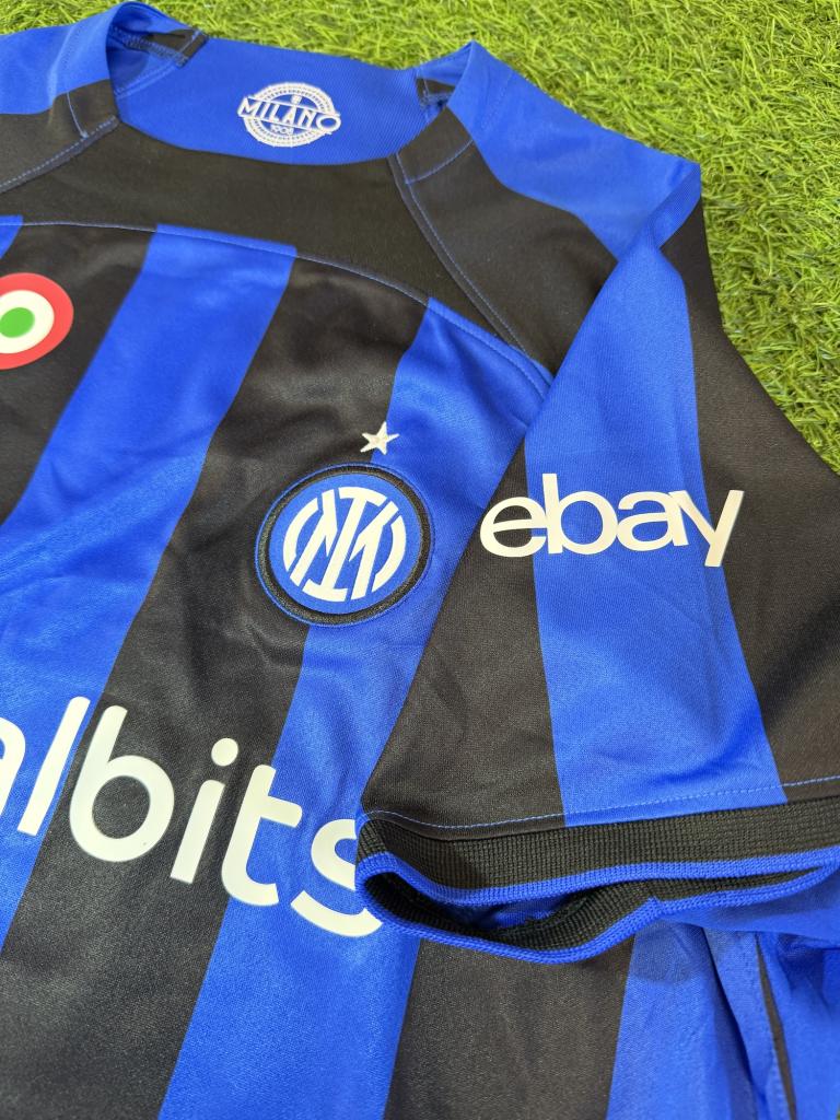Divisa con bande verticali nere e blu, sponsor tecnico Nike e sponsor commerciale DigitalBits sul fronte, con Lenovo sul retro. Sul petto sono presenti lo stemma Inter con stella e la coccarda tricolore. Sul retro troviamo nameset ufficiale Barella con numero 23 in bianco, completo di dettagli grafici e loghi Inter alla base delle cifre. Presente inoltre lo sponsor eBay sulla manica. Il tessuto Dri-FIT assicura comfort e traspirabilità durante l’utilizzo.