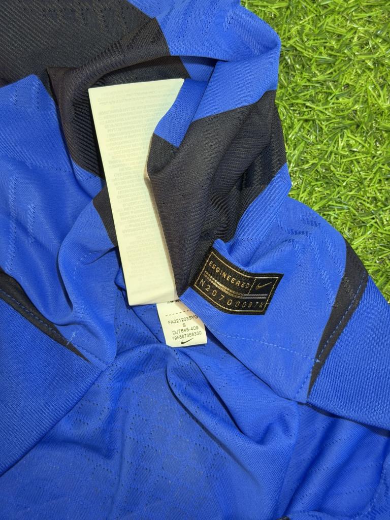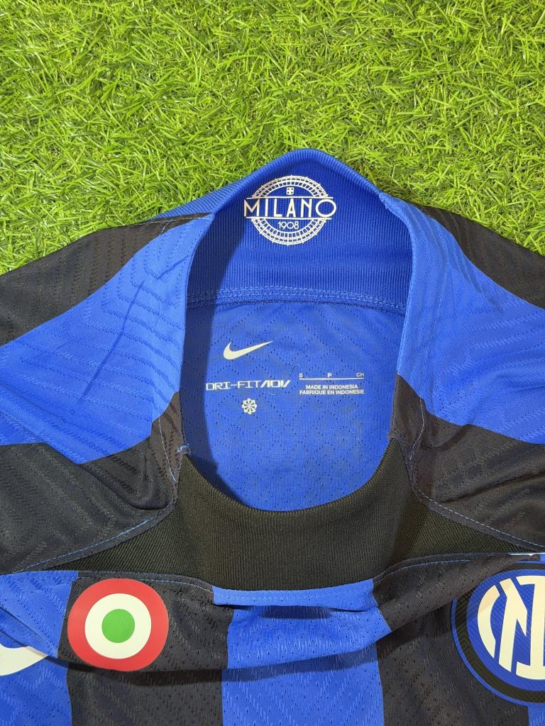 Maglia home dell’Inter stagione 2022/2023 in versione Authentic, personalizzata Dzeko 9 con configurazione da gara e dettagli tecnici avanzati.