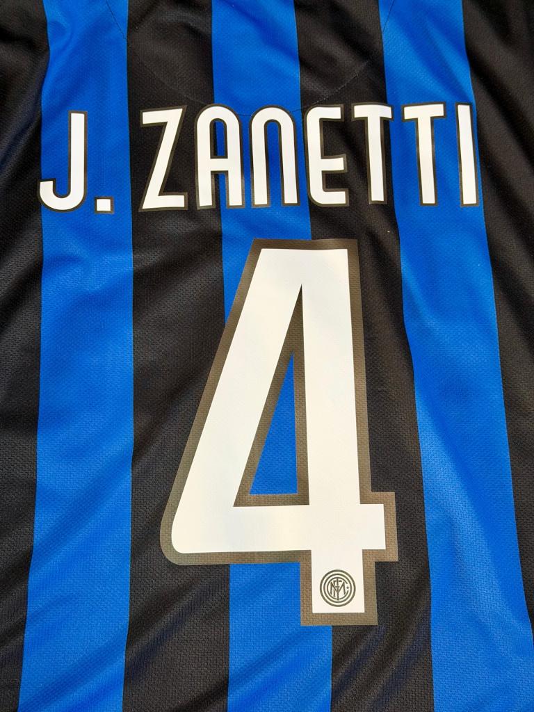 Maglia home dell’Inter della stagione 2009/2010, personalizzata J. Zanetti numero 4. Nike versione store.